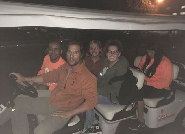 Столь выдающийся водитель быстро стал легендой университета: трудовая ночь Мэттью была запечатлена на фото и видео, а студенты с тех пор все чаще пользуются программой Safe Walk в надежде, что их подвезет именно МакКонахи.